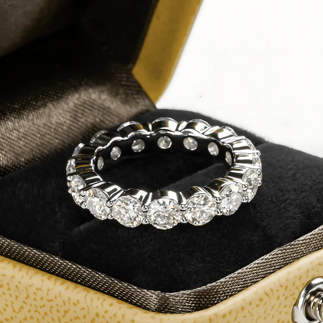 • Peso em Quilates: Moissanites de 0.3ct cada, totalizando 5ct, com 14 a 18 pedras, conforme o tamanho da aliança.