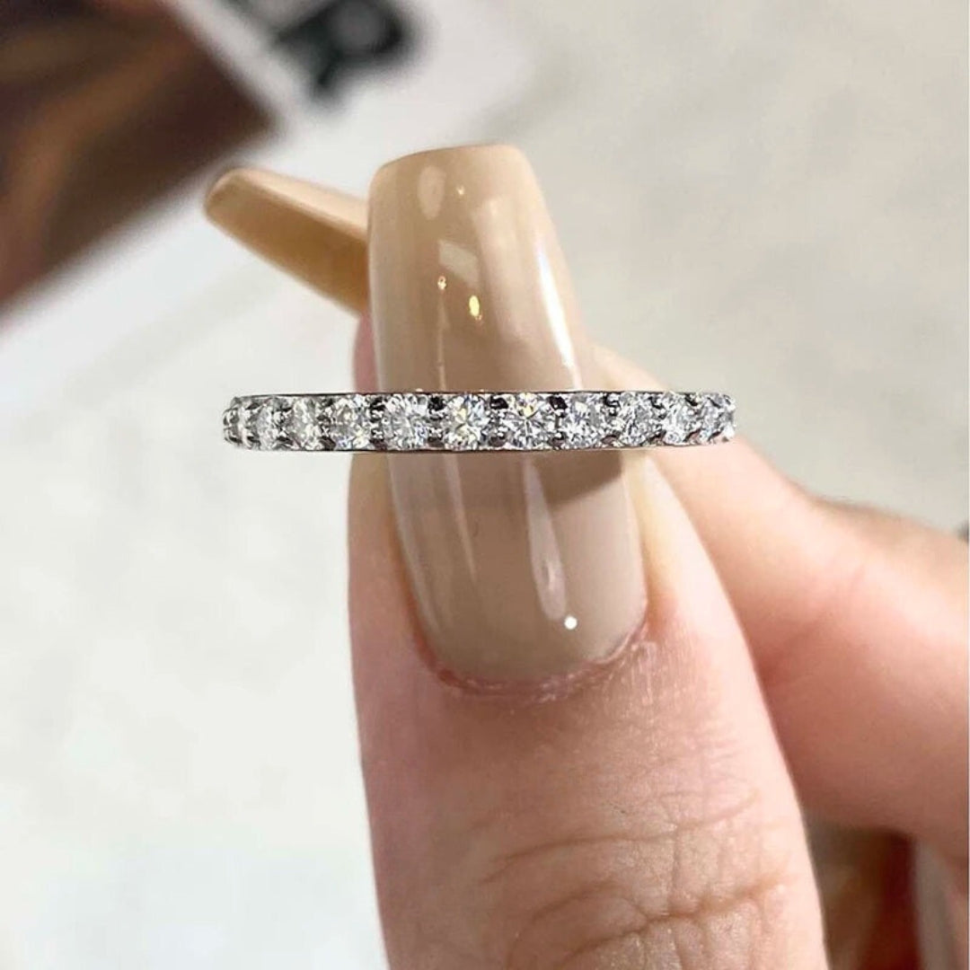 Meia Aliança Faísca Estelar com Cristal de Moissanite