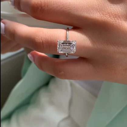 Anel Esmeralda Brilhante em Cristal de Moissanite