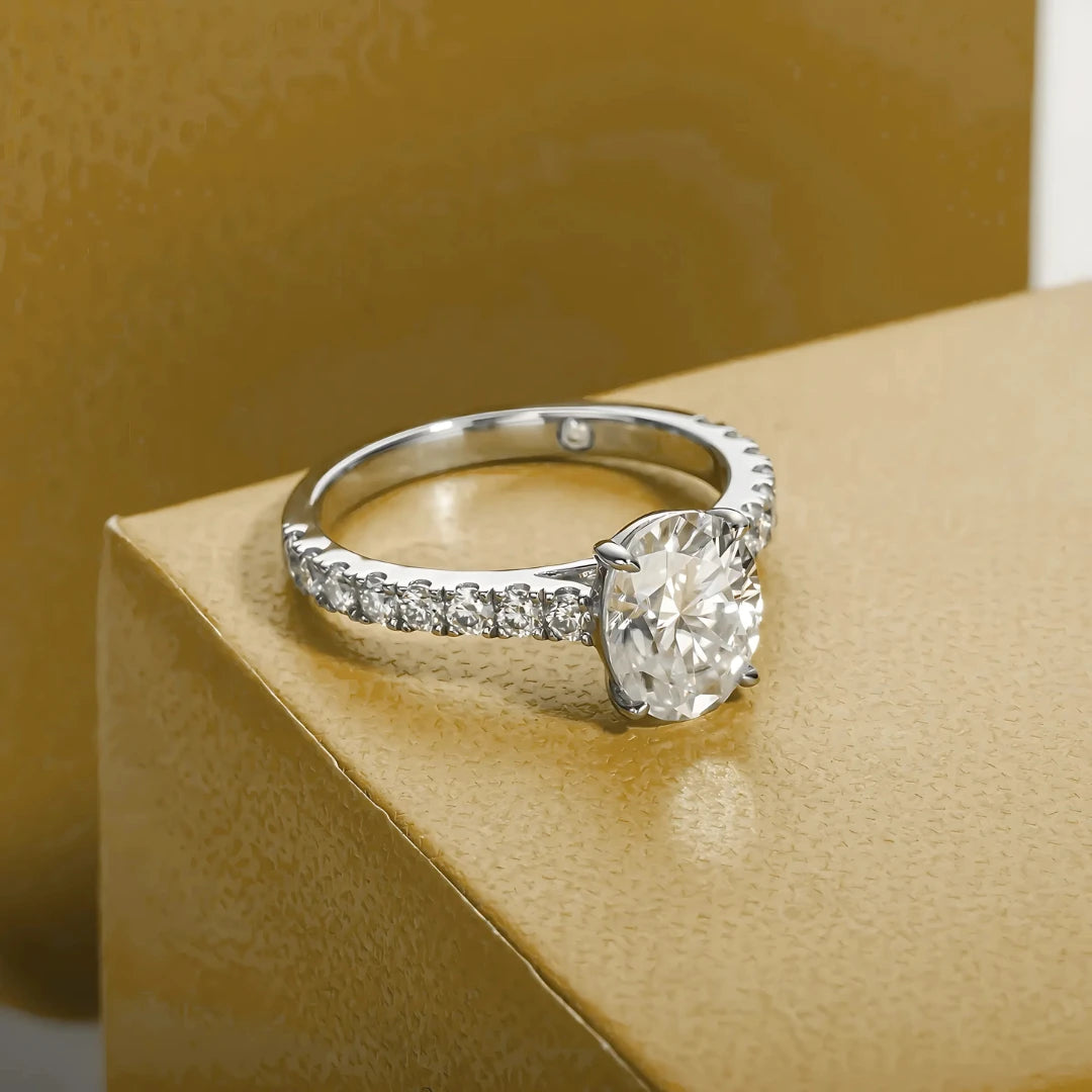 O Anel Iluminar Primordial é a celebração do brilho que dá origem à elegância. Com uma pedra central de 2 quilates em corte oval e detalhes reluzentes de Moissanites de 0,03 quilates, esta peça reflete a essência da luz primordial, trazendo sofisticação e harmonia para quem a usa.
