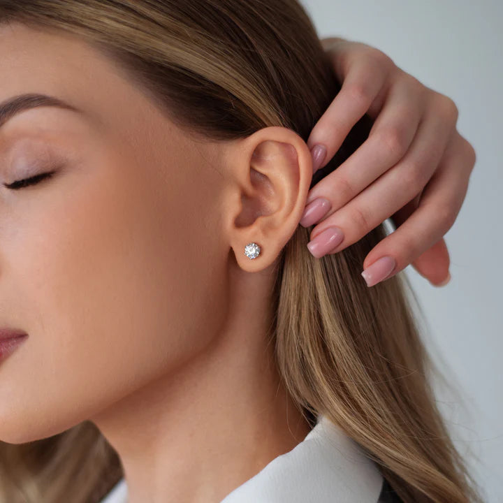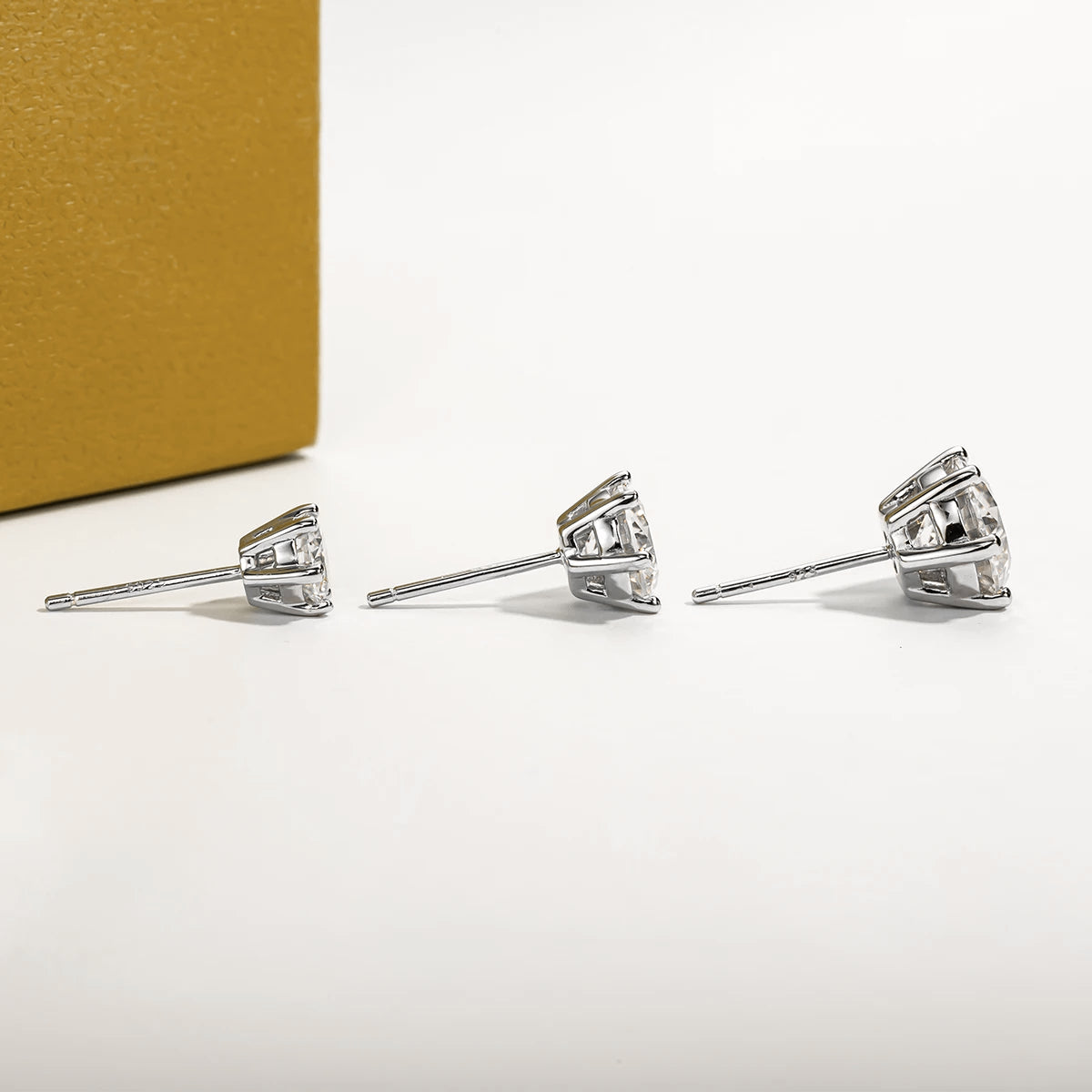 Esses clássicos brincos de são uma ótima escolha para o uso diário. Feitos com prata esterlina revestida de platina, cada brinco possui uma pedra redonda brilhante de 1, 2 ou 3 quilates. São um presente perfeito para você ou alguém especial.