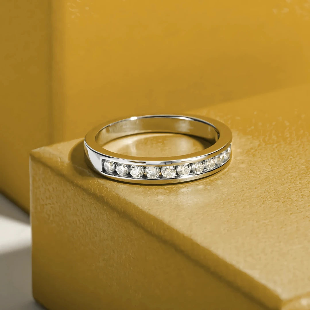 Um símbolo de força e brilho interior, a Meia Aliança Luz da Determinação reflete a essência de quem segue em frente com coragem e elegância. Seus moissanites impecavelmente lapidados iluminam cada movimento, criando um destaque atemporal para o seu estilo.